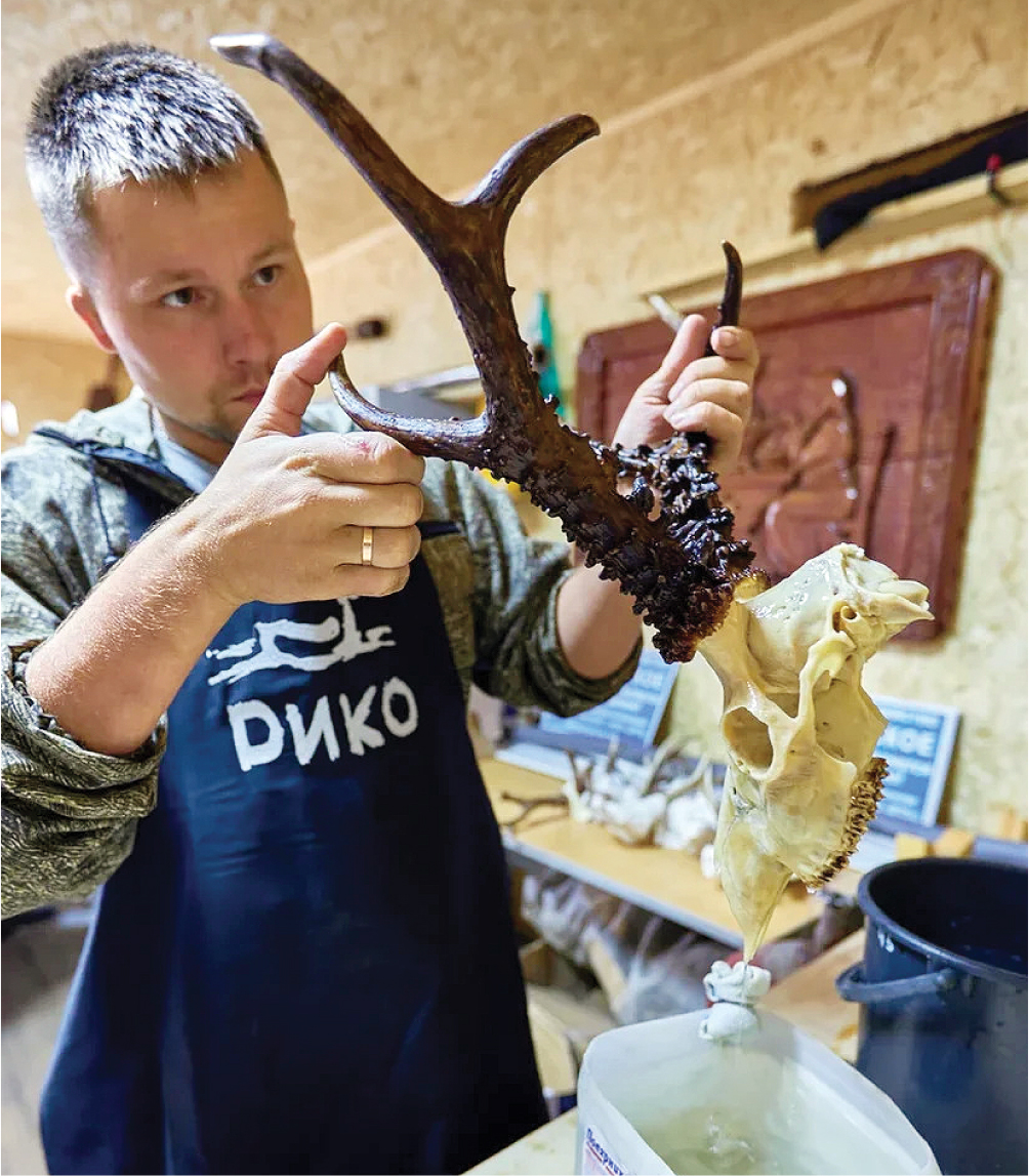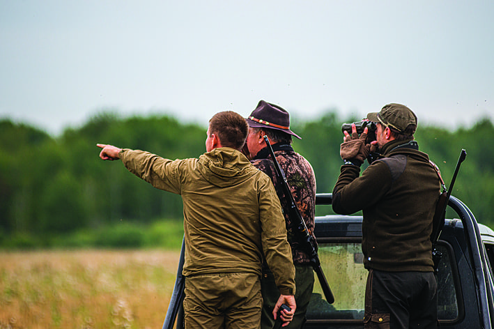 Professionelle Jägerdienste und Begleitung auf der individuellen Trophäen- oder Treibjagd, primäre Verarbeitung der Trophäe.